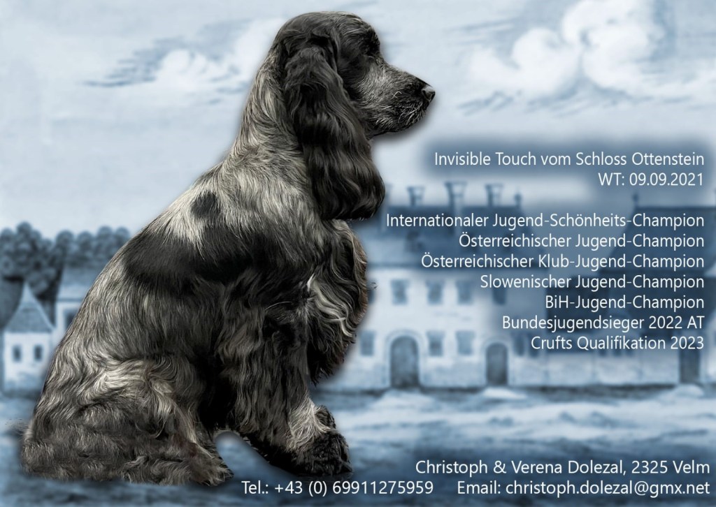 Formwert: Vorzüglich, JBOB, BOB, CACA, CAJC-CZ, CAJC-SK, Österreichischer Jugendchampion, Österreichischer Klubjugendchampion, Österreichischer Klubjugendsieger 2019, Klubjugendsieger Polná CZ 2019, Jugendbundessieger Tulln 2019, Crufts Qualfifikation 2020, Klubsieger Zeillern 2021