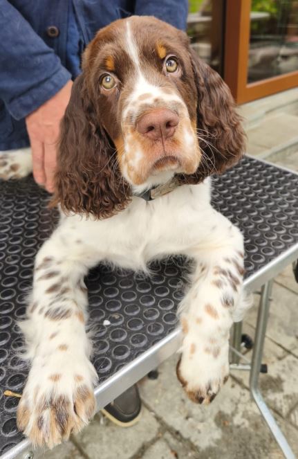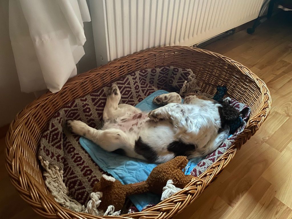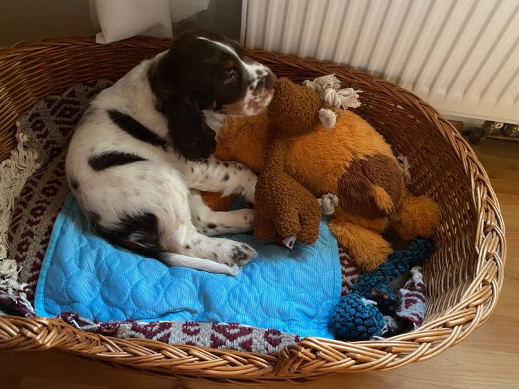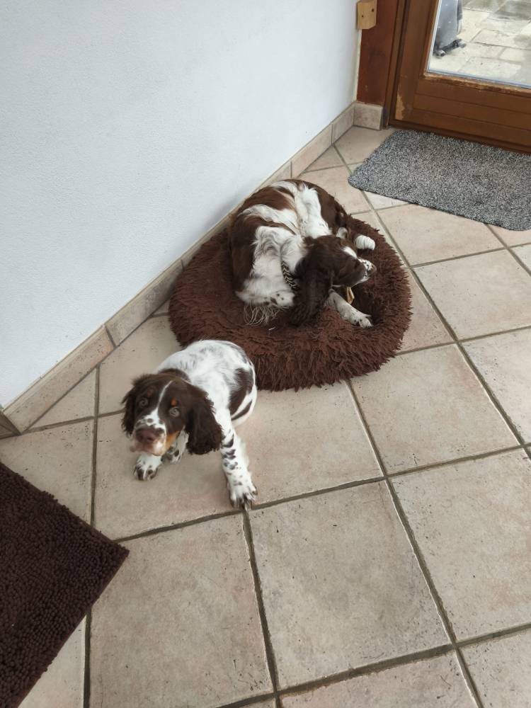 Heute haben wir Besuch bekommen, da habe ich gleich meinen „Spanielblick“ aufgesetzt (hab‘ ich von Mama gelernt). Da wird gestreichelt, geschmust und gespielt. Das mag ich! Ich kenn‘ sie schon, die sind immer ganz lieb zu mir.