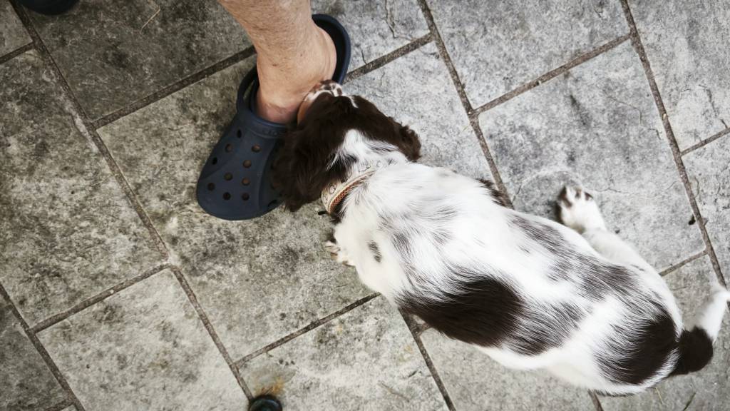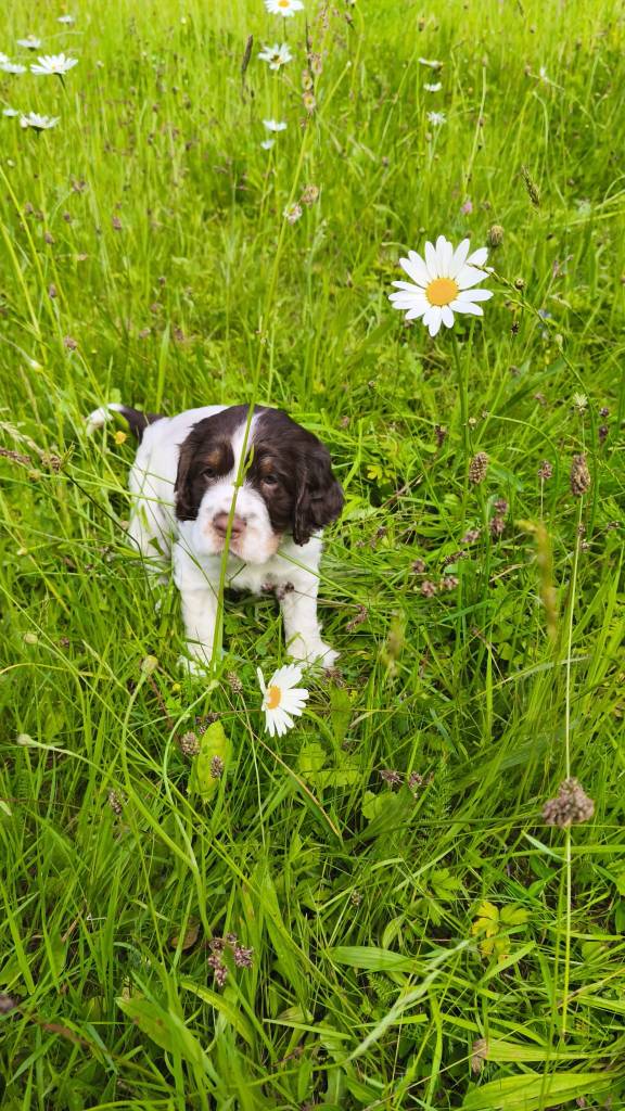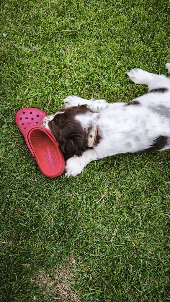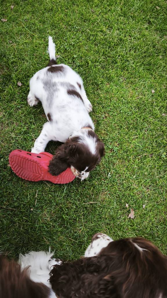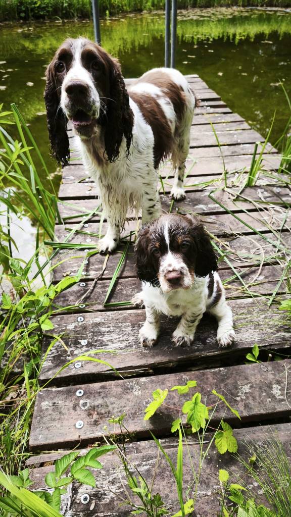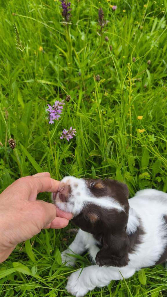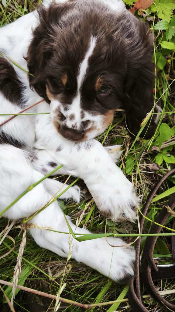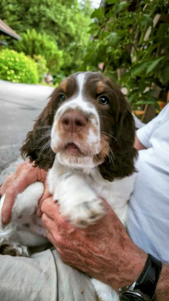 Heute haben wir Besuch bekommen, da habe ich gleich meinen „Spanielblick“ aufgesetzt (hab‘ ich von Mama gelernt). Da wird gestreichelt, geschmust und gespielt. Das mag ich! Ich kenn‘ sie schon, die sind immer ganz lieb zu mir.