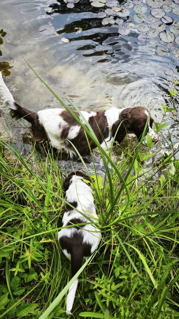 Nicht, dass ich mich vor Wasser fürchte, aber nass ist es schon. Brrrrrr!! Ich höre immer genau zu wenn meine Familie mit mir oder über mich redet und da habe ich erfahren, dass mein voller Name „Finkensee I’m Important Ikarus“ ist und dass ich ein Jagdhund?? bin und Spuren lesen kann. Da habe ich gleich zu „lesen“ begonnen und tatsächlich was gefunden. Das soll ein Maulwurf sein. Auch gut! Bis bald!