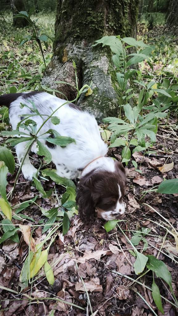 ……….. mit Mama im Wald herumlaufen. Da riecht’s so gut, manchmal so ähnlich wie der eine Knochen, den ich bekommen habe. Da könnt‘ ich stundenlang bleiben. Nur Mama darf ich nicht aus den Augen verlieren ……………