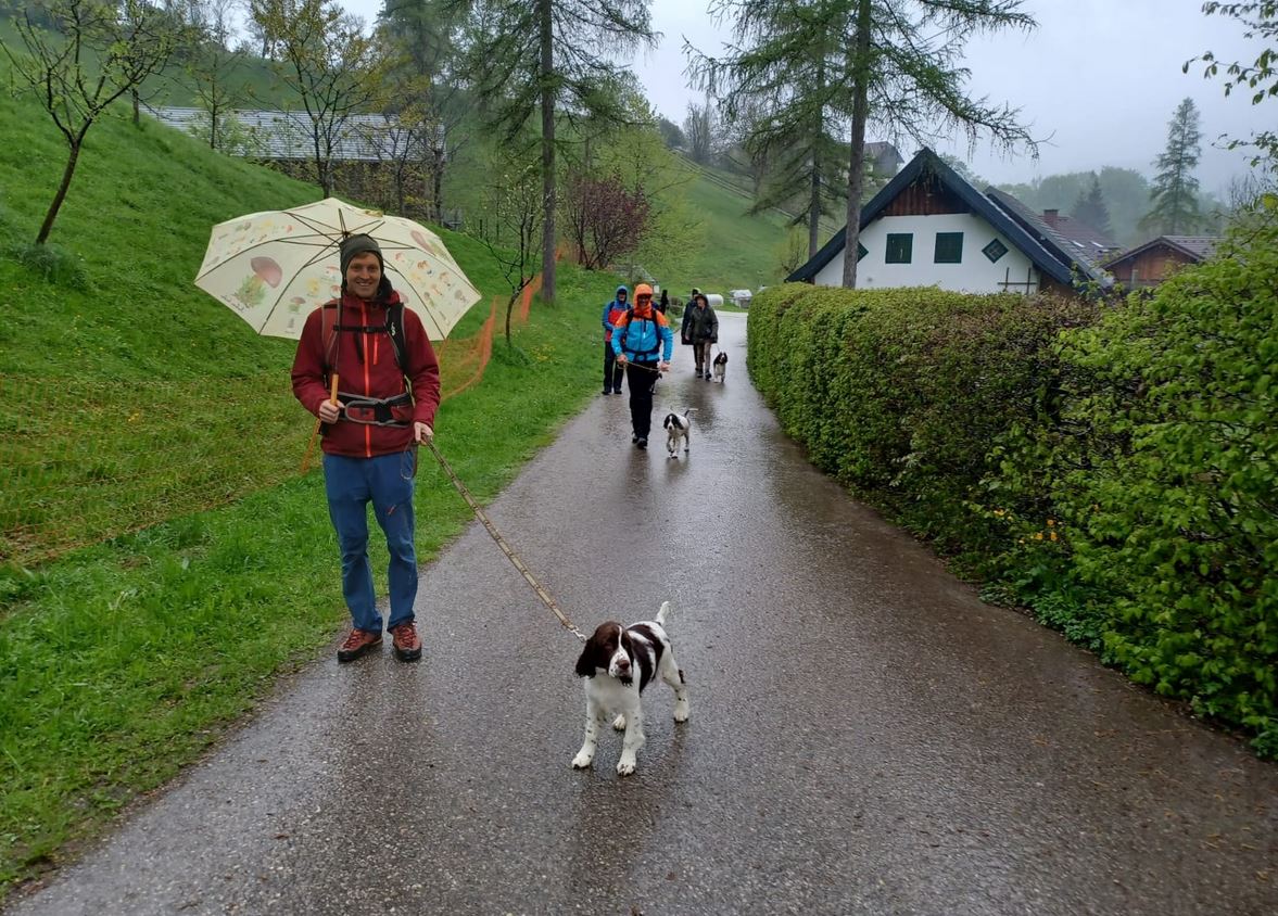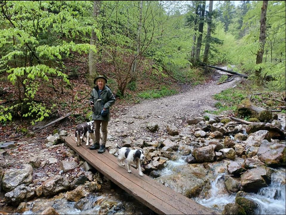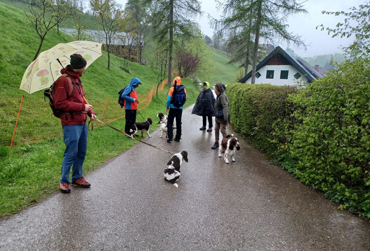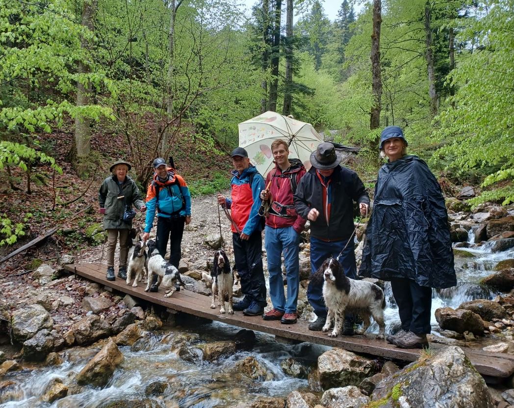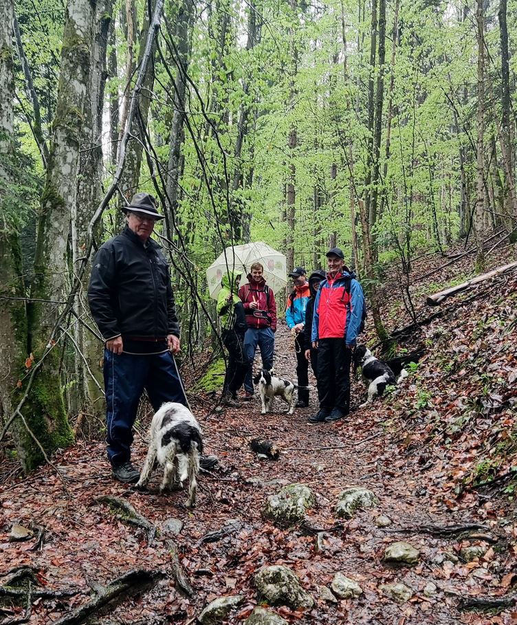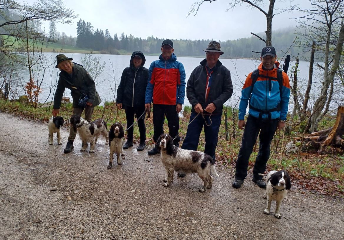 Schon am frühen Morgen erreichten mich die ersten Absagen wegen Schlechtwetters usw. So wurde aus der im Gasthof angekündigten Gruppe von ca 20 Personen ein kleines, aber feines Gruppchen von nur mehr 7 Personen und 5 Springerspaniels. Für Georgina und Gioia der erste so große Ausflug, den sie gemeistert haben.