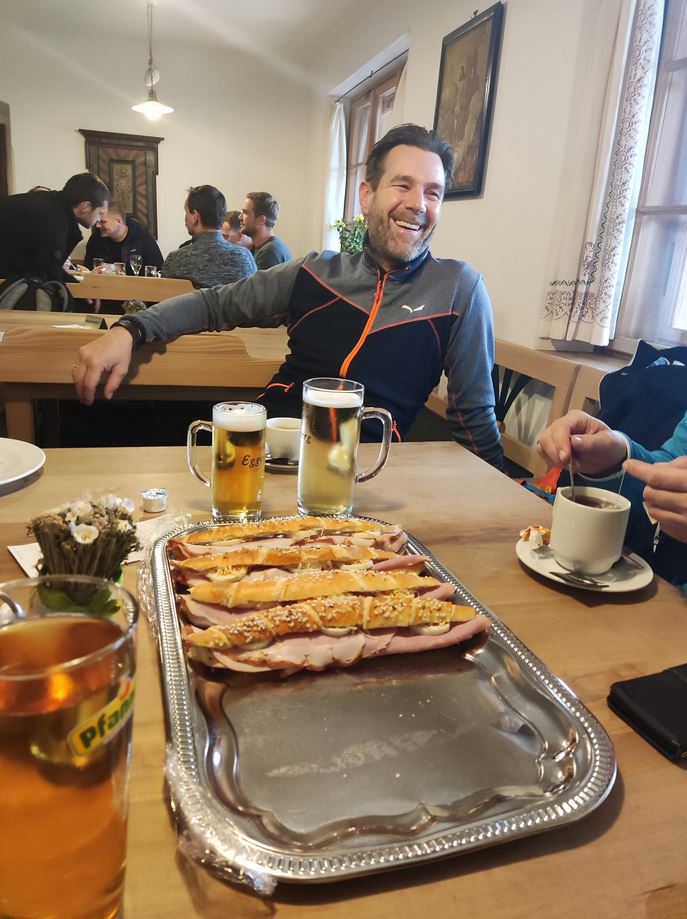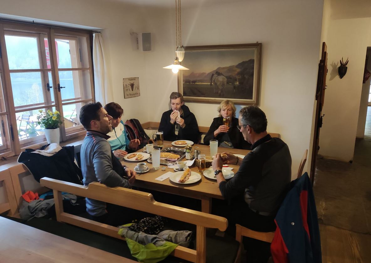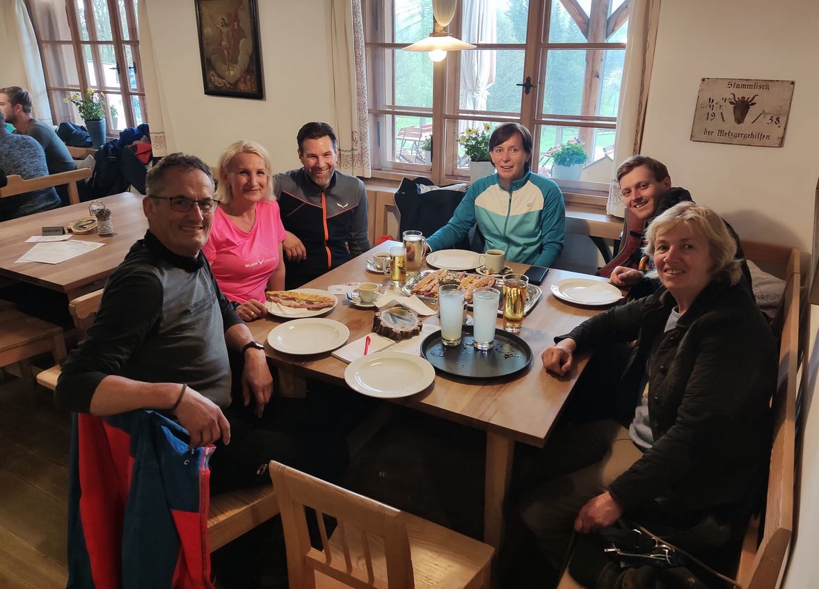 Wir besorgten uns frischen Schafkäse direkt vom Bauern, bevor wir dann im Gasthof Silbermair zum eigentlichen Mittagessen einkehrten. Kaum dort angekommen, öffnete der Wettergott so richtig die Regenschleusen. Danke für das lange Zuwarten!