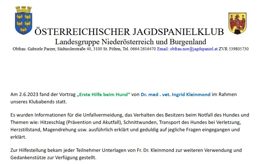 | 2023 | 02.06.2023 Vortrag: Erste Hilfe beim Hund Bericht | ![]() |