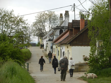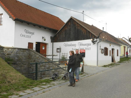 Zuerst machten wir eine angenehme Wanderung durch Weingärten und Kellergassen, die auch unsere Hunde trotz Leinenpflicht zufrieden gestellt hat. Schließlich gab es ja einiges zu Schnüffeln in „Wald und Flur“. Vor allem bei geöffneten Heurigen war der Duft von Wurst & Co. äußerst verlockend.