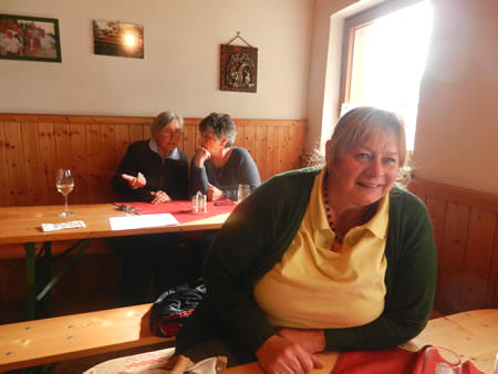 Die Begleiter hatten es da leichter. Sie mussten nur zu unserem Stützpunkt zurückkehren, um dort ein ausgezeichnetes Schnitzel, oder auch gebackene Champignons zu genießen. Auf keinen Fall darf man die hausgemachten Torten vergessen, die den Genuss abrundeten.
