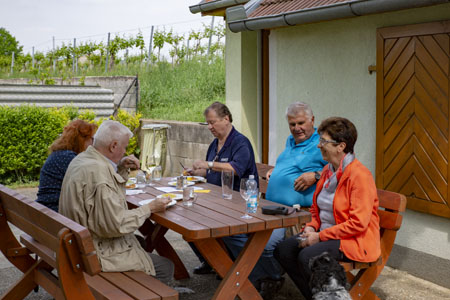 Lag es an der Wegbeschreibung oder an unserer Ausdauer, wir die letzten Wanderer hatten, bis wir wieder beim Bayerkeller zu den anderen stießen, stolze 7,9 km zurückgelegt. Zum Glück hatten die Frühheimkehrer Küche und Keller nicht vollständig geleert, sodass wir noch Schnitzel, Mehlspeise und ein gutes Glaserl Wein genießen konnten.