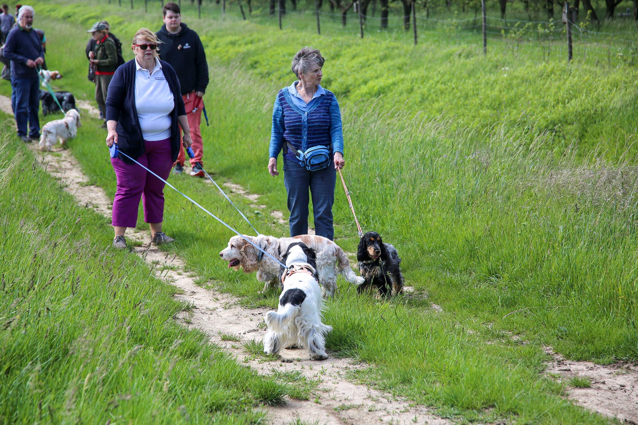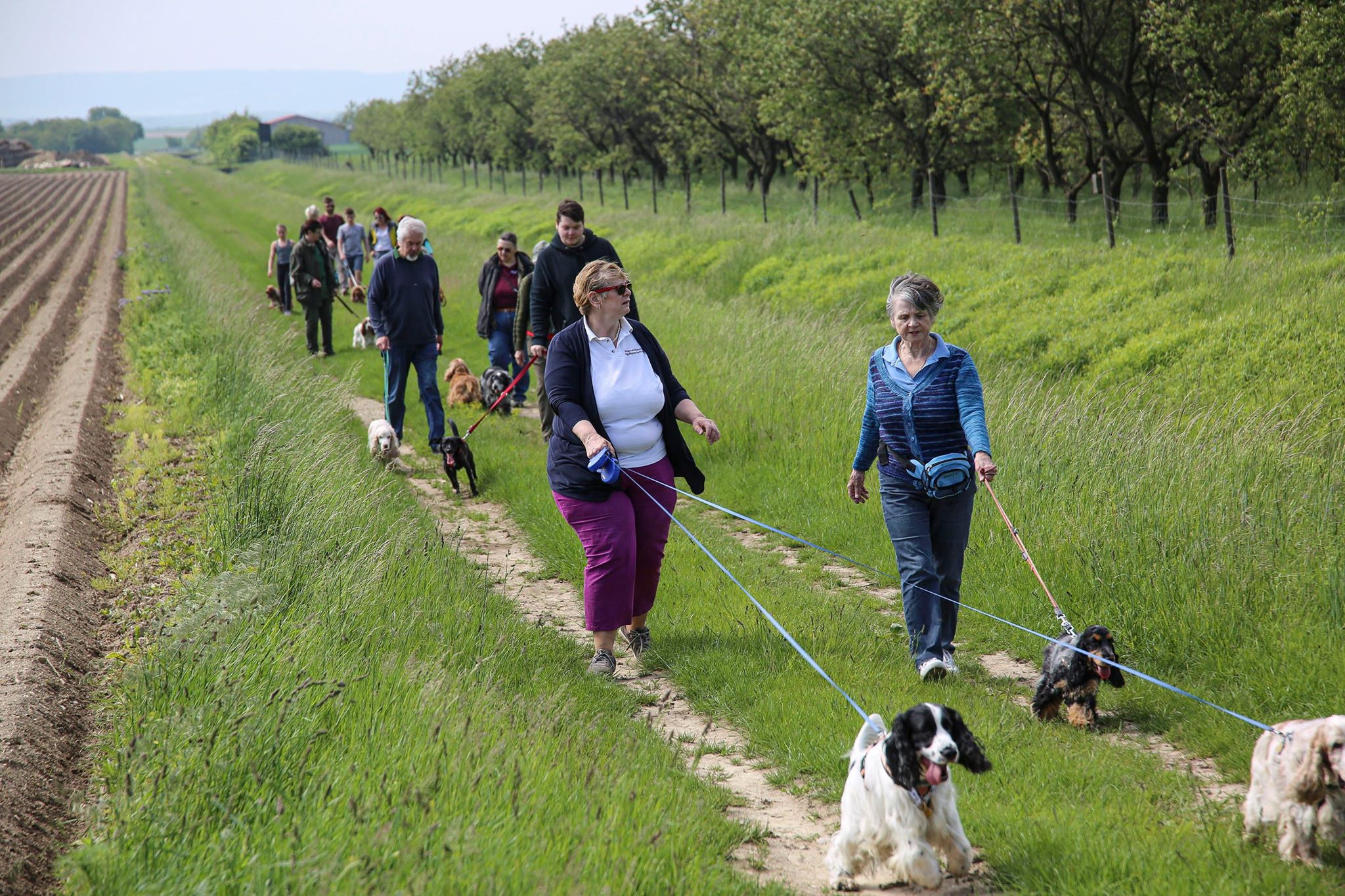 Um den Altersklassen der Hunde zu entsprechen, gingen dann die drei Senioren den kürzesten Weg, die Junghunde, die teilweise im Cockertaxi befördert wurden, den nächst längeren und die anderen, die Sportlichen den langen Weg.
