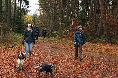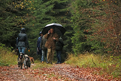 Wenn fröhliche Leute mit der Begeisterung für das Wandern mit ihren Hunden unterwegs sind spielt auch das Wetter keine große Rolle, unsere Spaniels sind wasserfest und gehen beim waschen nicht ein!!)). Der Wald zeigt sich noch immer in den schönsten Farben, am Zwischenziel gibt’s eine Labung und am Endziel Köstlichkeiten im Gasthaus Lind. Herz was willst du mehr.