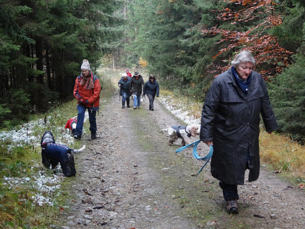 11 unentwegte fanden sich aber dennoch zusammen getreu dem Motto „es gibt kein schlechtes Wetter, nur unpassende Kleidung!“ Den Hunden machte die etwas weiche Bodenbeschaffenheit nichts aus, im Gegenteil, man rannte quietschvergnügt – die Menschen dachten schon an die anschließende „Unterbodenwäsche“.