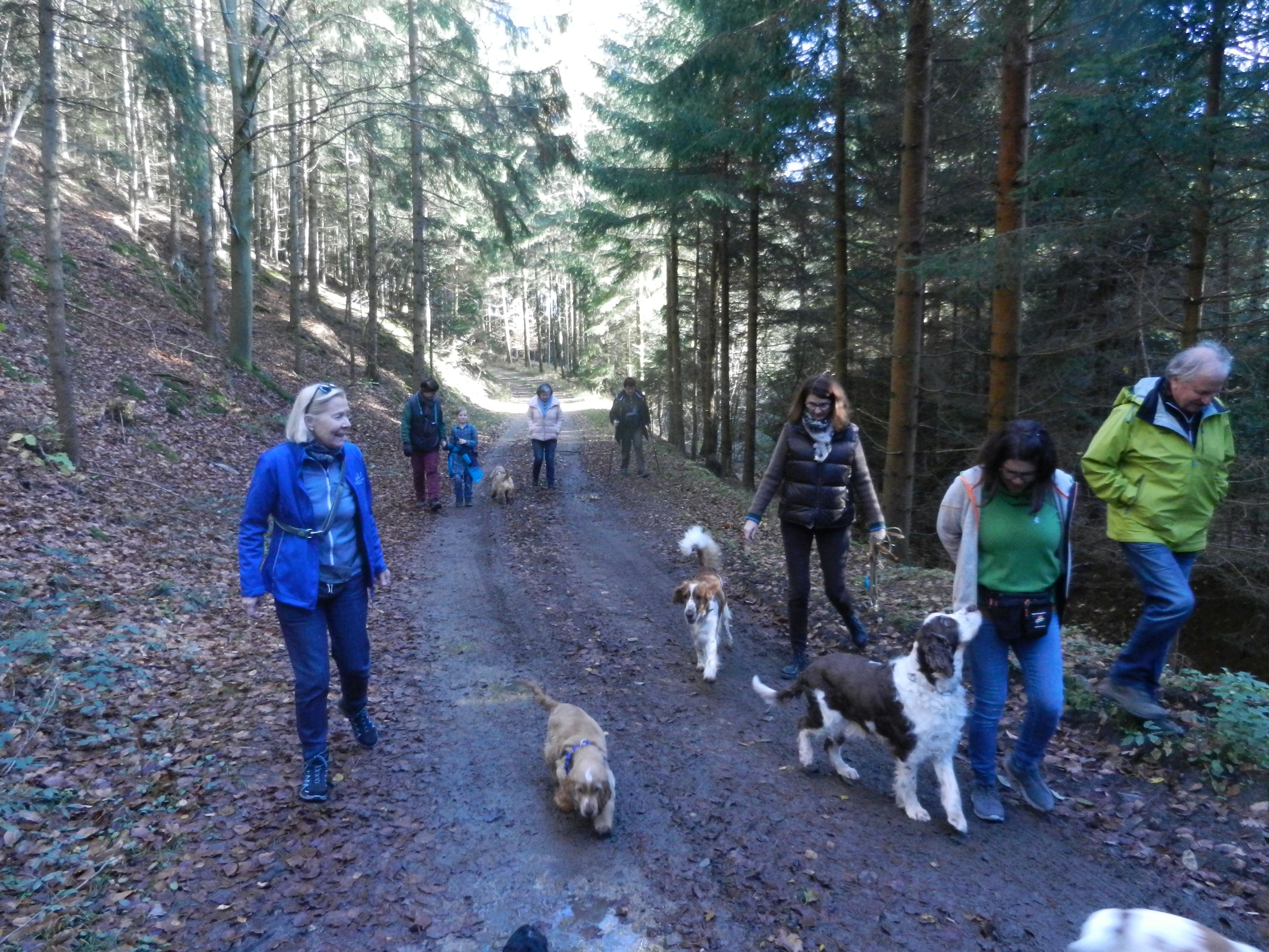 Auch unsere Hunde zeigten sich (wie immer) von ihrer besten Seite. Sie konnten es nicht erwarten in die Freiheit entlassen zu werden, um dort Spuren aufzunehmen und sie zu verfolgen, wie es sich eben für einen „Jagd“spaniel gehört. Ihr Verhalten war neugierig, temperamentvoll, aber auch diszipliniert und folgsam. Dass sie nicht nur Stöberhunde sondern auch Wasserhunde sind, bewiesen sie bei jeder noch so kleinen und noch so verschlammten Pfütze.