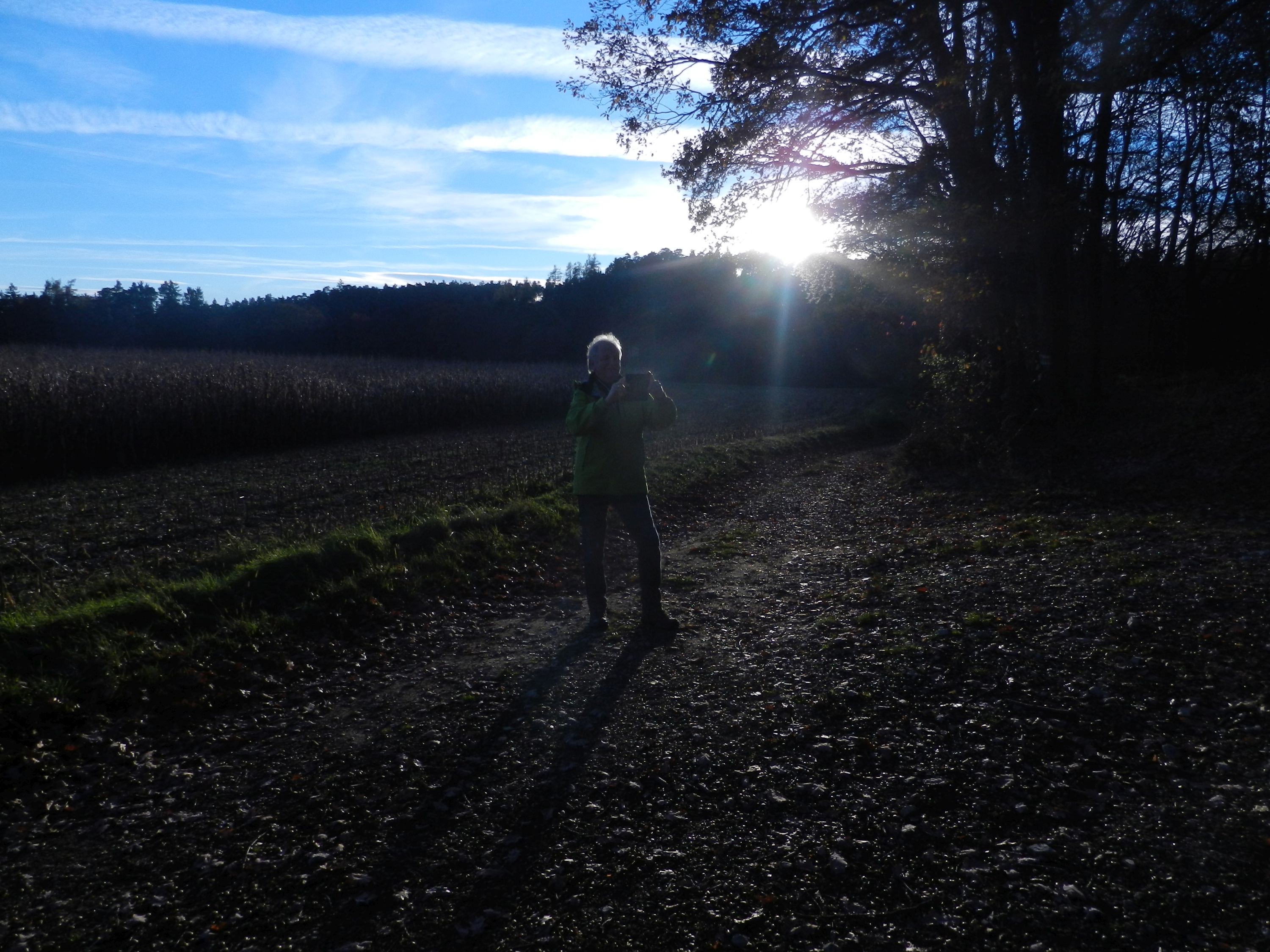 Als wir zurückkehrten machte sich auch die Sonne bereit hinter den Bäumen am Horizont zu verschwinden. Es war ein schöner Herbsttag und eine schöne Wanderung. Danke Gabi.