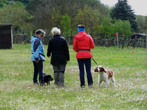 Bei typischem Aprilwetter hatten wir am Sonntag, den 28.4.2019 unser erstmaliges gemeinsames Hundetraining. Es fanden sich 9 lernwillige Hundebesitzer mit ihren jungen und älteren Spaniels ein.