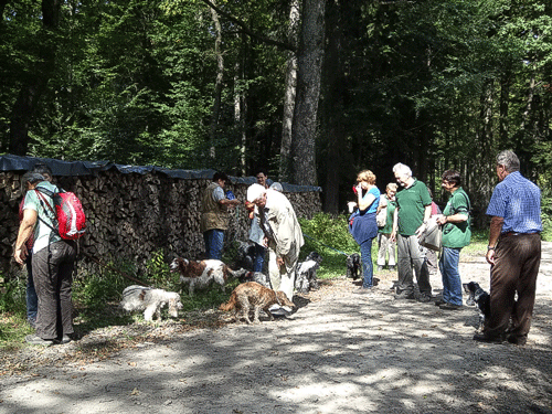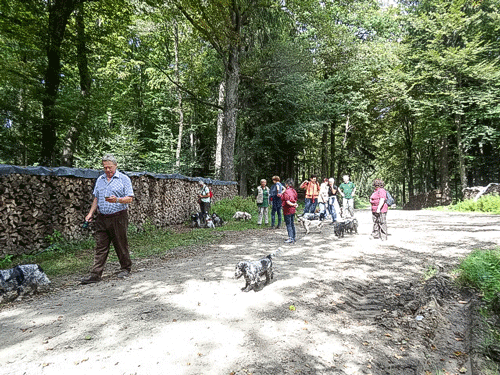 Hatten wir die letzten Jahre unsere Wasserfestigkeit testen dürfen, so verwöhnte uns Petrus diesmal mit herrlichem Spätsommerwetter. Pünktlich traf eine kleine aber feine Gruppe wanderfreudiger Spanielfreunde am vereinbarten Treffpunkt ein. Hunde aller Altersgruppen waren vertreten. Unser jüngstes Cockerkind, die kleine Chilli der Familie Hajek mit 4 Monaten, unsere ältesten Semester, Elinor, Evita und Ebony mit knapp 14 Jahren.