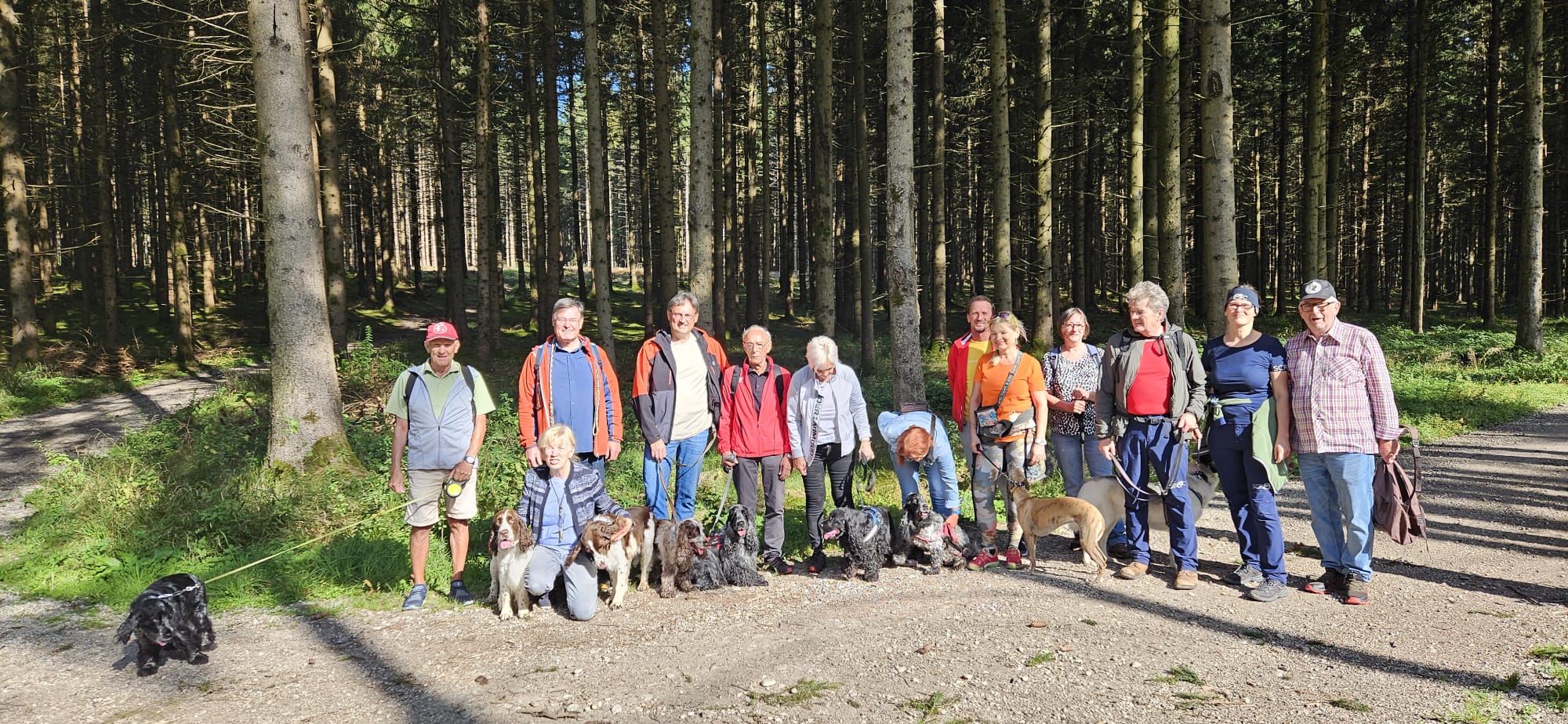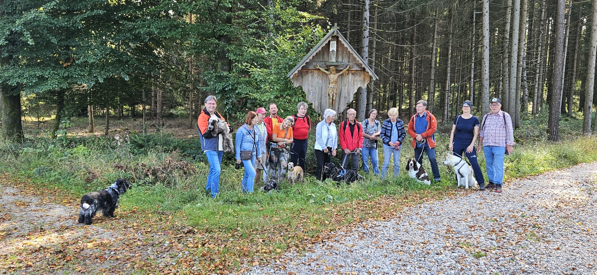 Um 9 Uhr 45 war beim Wirt Z’krottendorf, Stadt Haag, NÖ Treffpunkt. 14 Personen und 9 Hunde starteten zur Rundwanderung durch den Salaberger- und Haagerwald.
