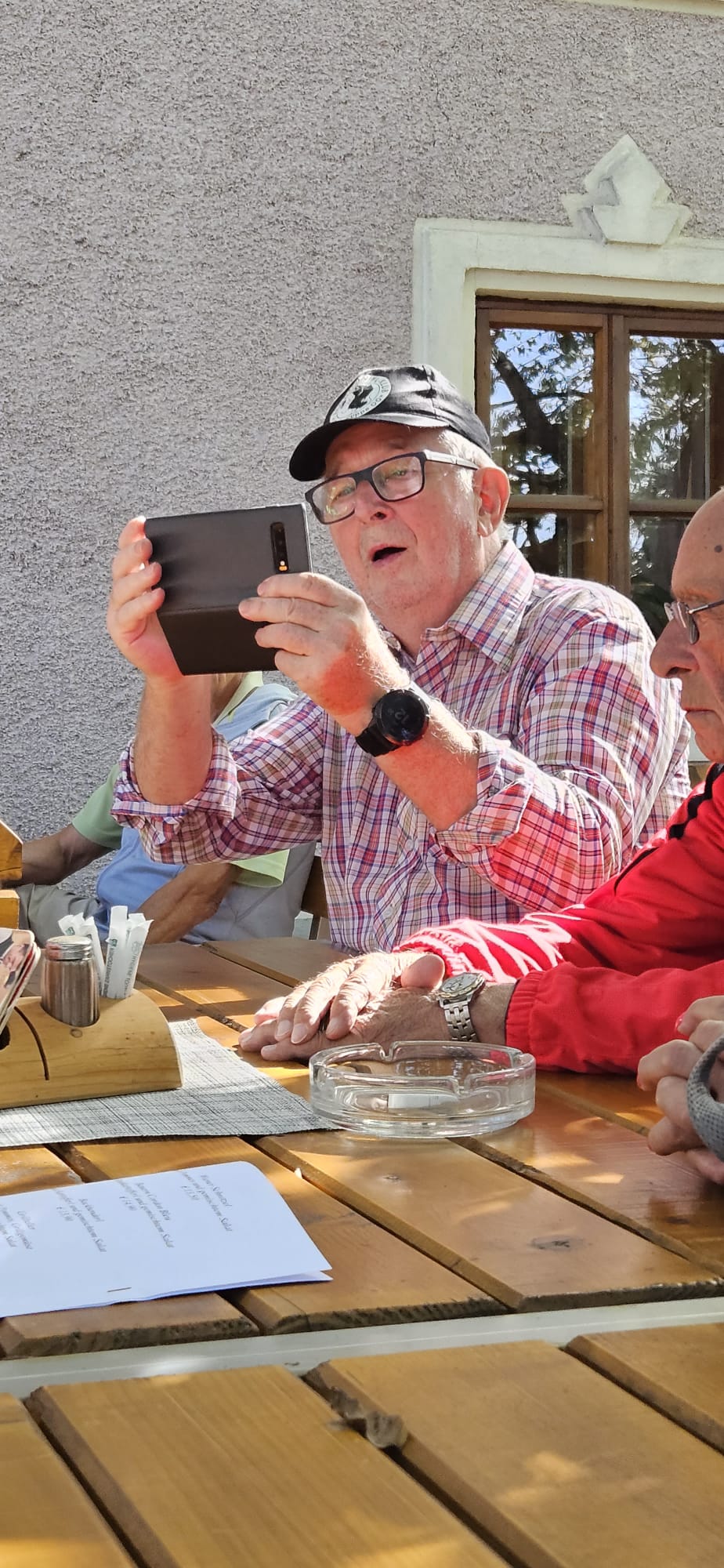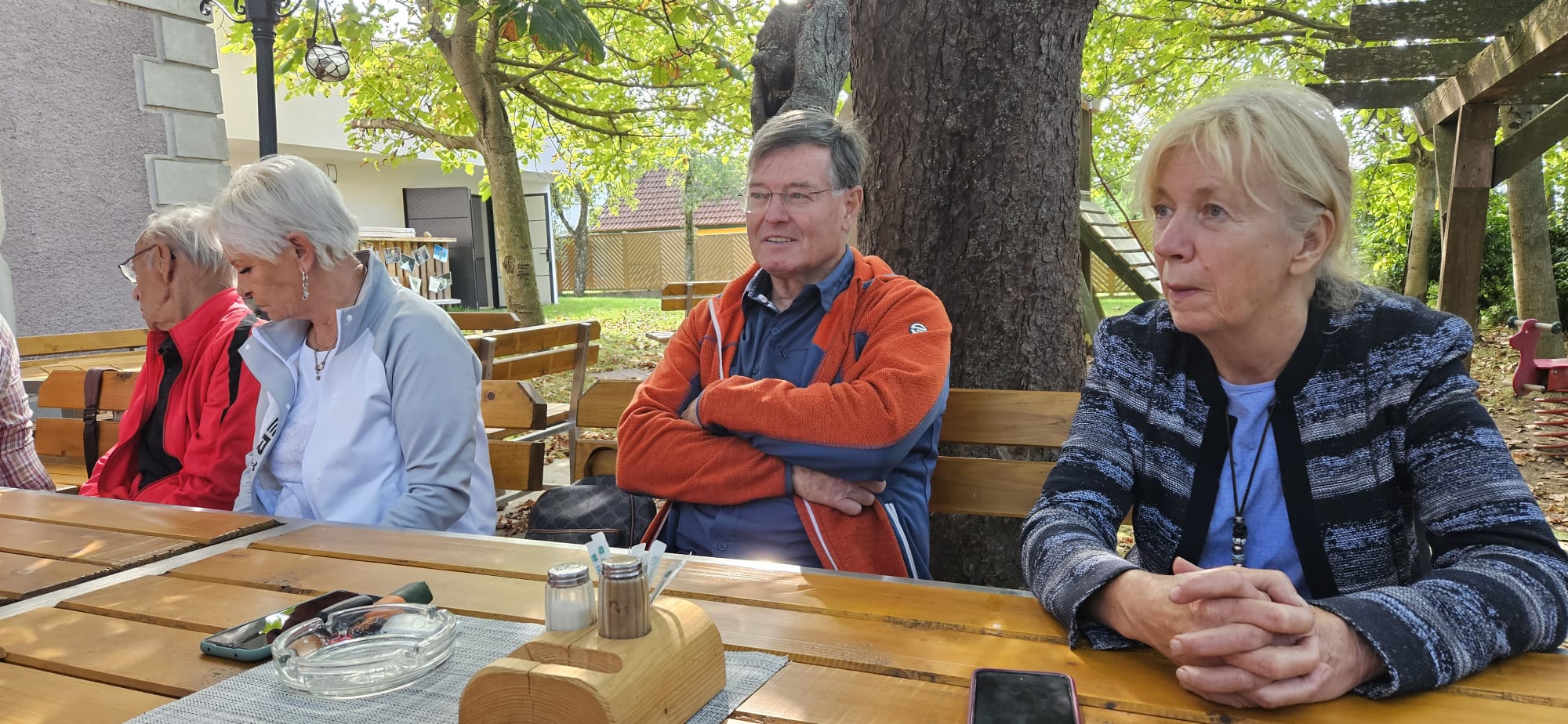 Dann fanden wir uns alle im schönen Gastgarten unter riesigen Kastanienbäumen ein und genossen mit sehr guten Speisen, Nachspeisen! und Getränken den Ausklang unseres tollen Wandertages.