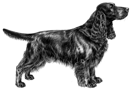 Der Field Spaniel hat die gleiche Herkunft wie der Cocker Spaniel, ist aber etwas größer und länger im Gebäude. Von der Größe her liegt er zwischen dem Cocker Spaniel und dem Springer Spaniel.