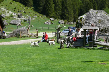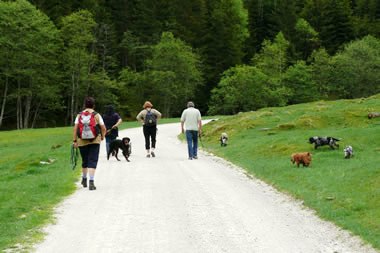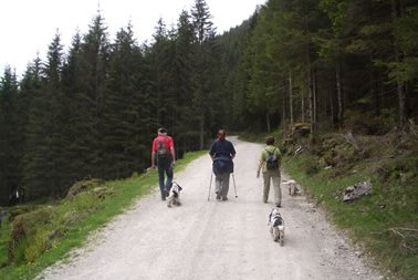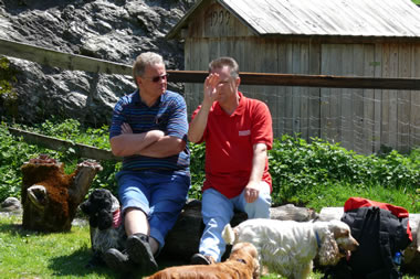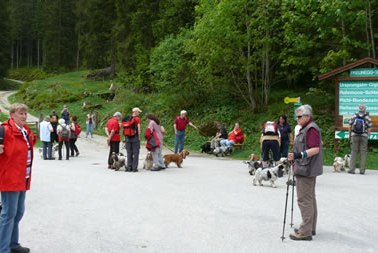 Der Beginn des verlängerten Wochenendes war der Start zum 9. bayr. – österreichischem Spanielwanderwochenende. Wenn auch sehr böse Zungen behaupten der Jagdspanielklub sei kein Wanderverein, so möchte ich diesen bösen Zungen wünschen, dass sie ihre Spaniels genau soviel und artgerecht bewegen – nämlich ohne Leine in Gottes freier Natur – wie wir das bei unseren Wanderungen tun. Ja ich halte ihnen sogar entgegen, dass mancher, reine „Ausstellungshund“, in seinem ganzen Leben weniger artgerecht bewegt wird, wie einer der teilnehmenden Spaniels hier an einem einzigen Wandertag. Vielen Hunden von „Sonntagsjägern“ wird es auch nicht viel besser ergehen. Von der Freude die wir unseren Spaniels hier bereiten ganz zu schweigen. Ob 8-9stündige Autofahrten, dann einen Tag lang im Käfig sitzen, einziger „Ausgang“ die Runden im Ring, dem Hund mehr Freude bereiten als eine mehrstündige Wanderung mit vielen „Abstechern“ ins geliebte Wasser, möchte ich der Beurteilung des Lesers dieser Zeilen überlassen.