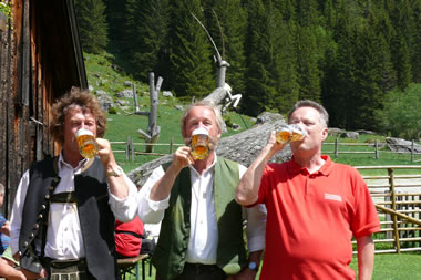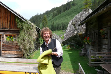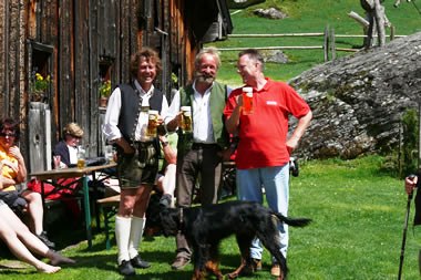 Am Hinweg gab es einige kleine Regengüsse – wir gingen mit etwas „Wasserkühlung“. Gegen 12 Uhr, nach einer gemütlichen Wanderung, trafen wir auf Manfred Royers „Moarhofalm“ ein. Die Sonne schien wieder auf uns herab, die Wolken wie weggeblasen. Wie mir Hans Stocker am Nachhausweg erzählte ist in dieser Almhütte seine Großmutter zur Welt gekommen. Am Rückweg bekamen wir wieder eine kurze Dusche von oben, Reiner Fein hatte leider sein Duschbad vergessen, drum sah er danach etwas ramponiert aus. Weil der Weg und auch die Alm viele Motive hergibt gibt es wieder eine 2. Seite mit Fotos.