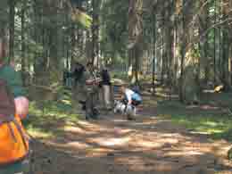 Zuerst ging es ein kurzes Stück über die Strasse, hier standen einige Bewohner und warteten schon auf uns. Sie waren erstaunt über soviel Spaniels auf einmal, so etwas hatte man noch nicht gesehen. Alle waren sehr freundlich zu uns und kamen aus dem Staunen nicht heraus. Sie waren sehr überrascht, dass man mit so vielen Hunden problemlos und diszipliniert wandern kann. Das ist meiner Meinung auch nur mit so einer friedlichen Hunderasse wie Spaniels möglich. Wo immer wir vorbeikamen mussten wir mit den Leuten plaudern, ohne Probleme boten uns die Leute an über ihre Wiesen und Grundstücke zu gehen und sahen uns noch lange nach. Hier sei überhaupt zu erwähnen, dass alle Leute hier sehr freundlich und zugänglich sind, eine Eigenschaft die leider nicht überall so selbstverständlich ist.