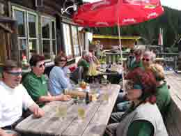 Bergab ging es etwas schneller wieder nach Hause, einige (auch ich) wanderten das letzte Straßenstück mit Benzin. Alle erholten sich rasch mit einem Bier. Am Abend reparierte unser Orthopäde Dr. Parzer mit Gattin Gabriele die weidwunden Knie einiger Wanderer, herzlichen Dank an beide im Namen der Versorgten.