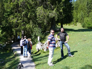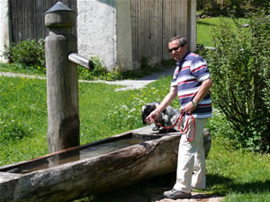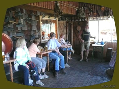 Kaum zu Hause in Zell ging’s um 14 Uhr schon wieder zu Fuß, diesmal gleich vom Haus weg, zum berühmtesten Mann von Zell am See: Bart- Olypiasieger Fritz Sendlhofer. Waren schon am Vormittag einige abtrünnig und gingen zur „Embergalm“ statt zur Wallfahrt, zogen auch am Nachmittag einige „Benzinwanderer“ des Vormittags eine Fahrt mit der Seilbahn auf die Schmittenhöhe einer Wanderung auf den Sonnberg vor. Unsere kleine Gruppe hatte nicht nur eine schöne Wanderung, einen sehr humorvollen und lehrreichen Vortrag vom Fritz über Sägen (er hat über 500 Sägen in seinem Sägemuseum, die älteste aus der Römerzeit), hatte einen herrlichen Ausblick über Zell am See und in die Hohen Tauern und genoss sehr gutes Bier aus der „Saglbrauerei“. Was sie kennen die „Saglbrauerei“ nicht? Fast eine Bildungslücke, es ist Fritz Sendlhofers kleine Privatbrauerei auf ca. 10 Quadratmeter. Sein Bier trinken sogar österreichische Politiker. Am Schluss sahen wir sogar 2 Olympiasieger der Bartträger, einen der Klasse Vollbart, den zweiten der Klasse Kunstbart, beide sehen sie im Bild.