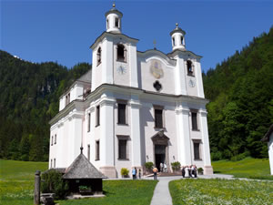 Traumwetter auch am Samstag! Aufbruch um 9,30 Uhr für die „Fußwallfahrer“, 10 Uhr Abfahrt für die „Benzinwallfahrer“. Über Saalfelden geht’s nach St. Martin bei Lofer bis zum Parkplatz bei der Mautstelle der Straße nach Maria Kirchental mit einer wunderschönen Barockkirche.
