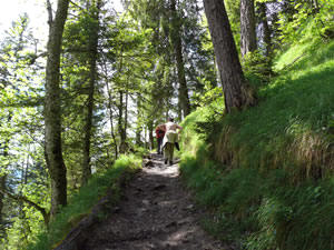 16 Wanderer gingen über den Wallfahrersteig entlang eines kleinen Baches auf einen gut ausgebauten aber ständig steigenden Weg mehr oder weniger steil ca. 1 Stunde bergauf. Von Zeit zu Zeit standen Tafeln mit Erklärungen zur Wallfahrtskirche, deren Entstehungsgeschichte und andere wissenswerte Dinge. Wie viele unserer Wanderer das gelesen haben entzieht sich meiner Kenntnis. Frau Ehinger, Heinz Fuchs und ich lasen alles sehr aufmerksam, dadurch kamen wir auch später oben an. Man soll die Natur genießen und nicht im Eilzugstempo durchlaufen. Es gibt so viel zu bewundern was Gott für uns schuf, wir müssen es nur sehen wollen. Das haben die Meisten allerdings schon vergessen oder sie können auch in ihrer Freizeit nicht wirklich abschalten. So eine Wallfahrt zu Fuß in Gottes schöner Natur sollte eigentlich zur Rückbesinnung förderlich sein, aber haben das auch alle begriffen?